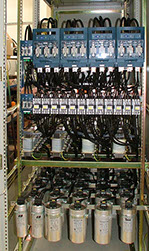 - Klasické stykačové kompenzátory s automatickým připínáním kondenzátorů k síti. Řešení je vhodné do sítí, nezarušených vyššími harmonickými. Nevýhodou je možnost přetížení kompenzačních kondenzátorů a případné zvýšení harmonických složek v sítích s jejich výskytem.